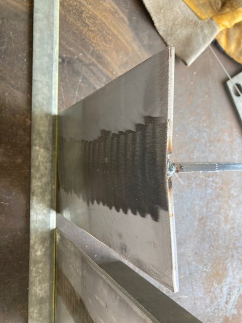 Das Bild zeigt einen typischen Schweißverzug bei einem dünnwandigen Bauteil. Gerade im Dünnblechbereich führt die Wärmeeinbringung oft zu welligen oder verzogenen Oberflächen – ein zentrales Thema im Seminar Flammrichten und Induktionsrichten.